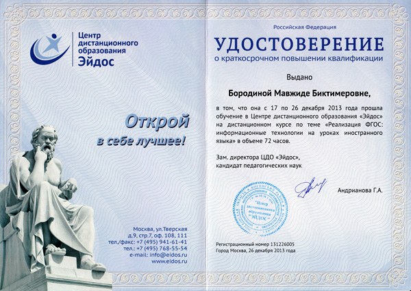 - Почтовые расходы по пересылке Удостоверения и Свидетельства